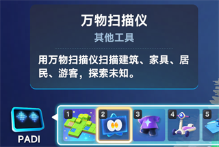 A:您可点击屏幕下方PADI按钮,查看当前解锁的能力和工具。您可拖动图标至下方的快捷栏进行使用。