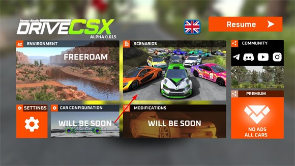 3、点击主界面的第二个按钮可以选择不同的挑战,玩家可以驾驶车辆来完成这些挑战。