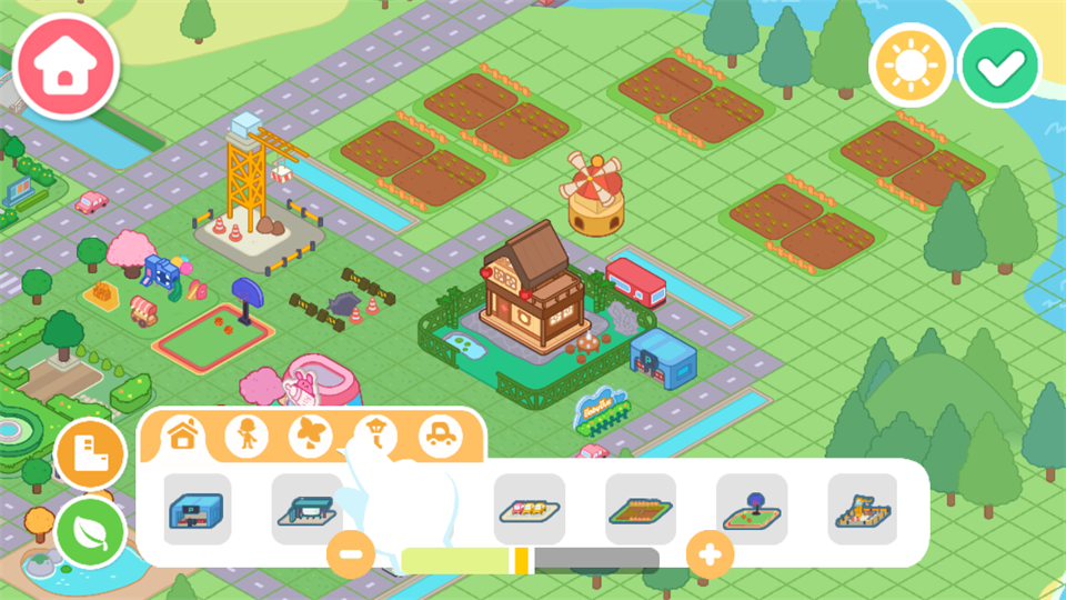 2、进入游戏中,可以自由对小镇进行装饰建造。