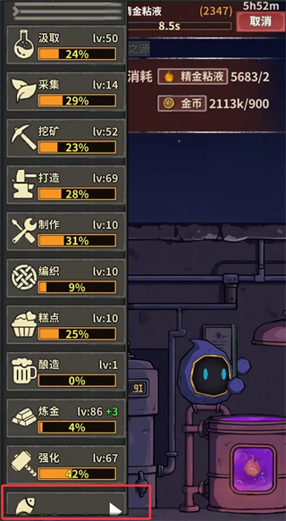 因为游戏是自由交易的市场,且系统目前是没有干预的,而金币(游戏币)的产出如果只靠开箱子(所有职业在进行游戏操作的时候都会掉落)产出的金币是完全不够市场运转的,所以炼金当中的点金就充当了这一角色——印钞机,点金可将游戏中大多数的物品转化为金币,我们以初始粘液为例,我们使用粘液进行点金,2个粘液有70%的概率可以转化为20的金币。这样就实现了金币的无中生有,但是点金普遍经验较低,升级较慢,但是前期可以在启动资金较少的情况下获得较高的收益,并且可以挂机。也算是适合新手的一种职业。不过点金一般是用各种源来进行点金,而各种源前期基本只能靠买。所以新手还是推荐沉淀一下有了启动资金再来玩点金。