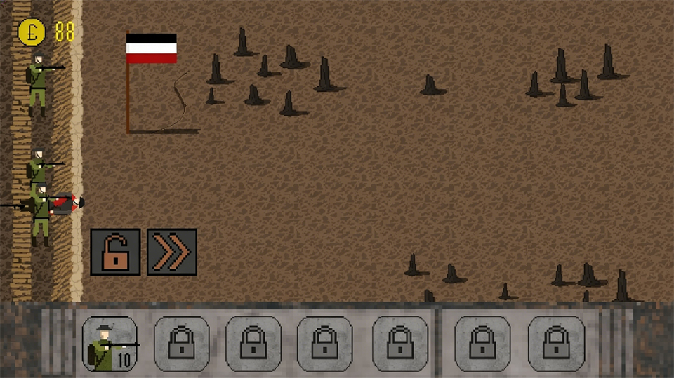 1917战壕战(com.SimpleBitStudios.TrenchWarfare1917)是一款复古像素风格的策略战争手游,玩家将扮演一战指挥官,运用多样化的兵种和特殊能力,在激烈的战斗中逐步壮大实力,展现战争实力,让玩家能更自由地升级单位和收集装备。游戏考验玩家的军事能力和战争思维,指挥一支疲惫却顽强的小队,在纵横交错的战壕体系中抵御敌军一波又一波的冲锋。机枪扫射、毒气弥漫、坦克压境——活下去,守住这道防线!