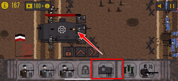 4、随后开始游戏,你点击可以购买士兵,地下的数字表示需要的金币,后期还可以解锁坦克等,非常有趣;