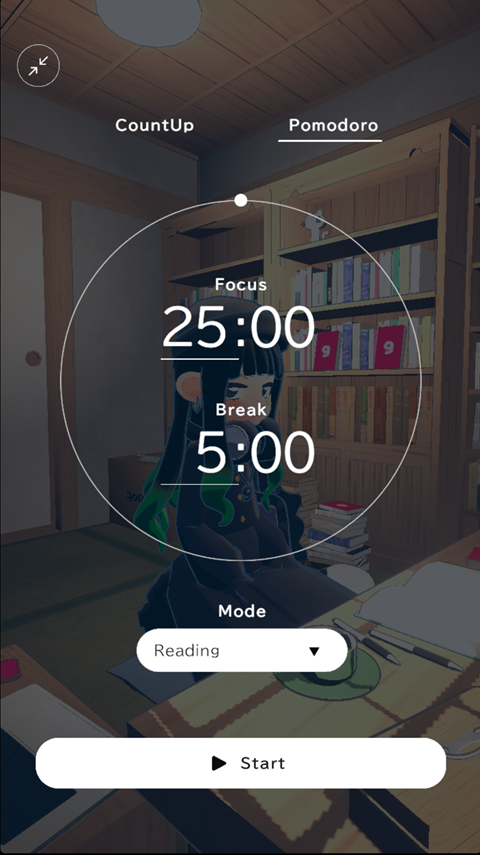 8、屏幕右下角的番茄计时器帮助你高效管理时间,25分钟的专注后还有5分钟的放松时间。