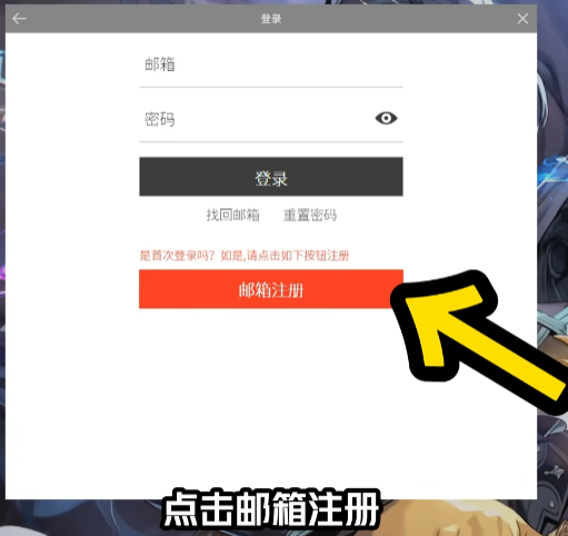 2、登录游戏之后选择邮箱登录并注册,然后会跳转到官网