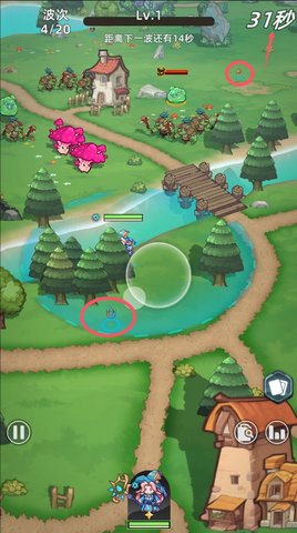 5、玩家通过移动可以拾取地上的道具或者食物,右上角是存活的时间。