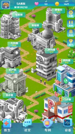 4、不断的扩建医院科室,升级解锁更多的床位。