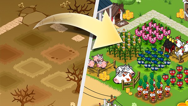 进行耕、施肥、浇水、饲养等农业活动,保证农作物和牲畜的健康生长。这些活动需要耐心,同时也增加真正的互动性。出售农产品可以获得金币,金币可以用来购买更多的种子和农业设备。除了金币之外,你还可以通过出售农产品来获得魔法种子,可以用来解锁更多品种的农作物和牲畜。