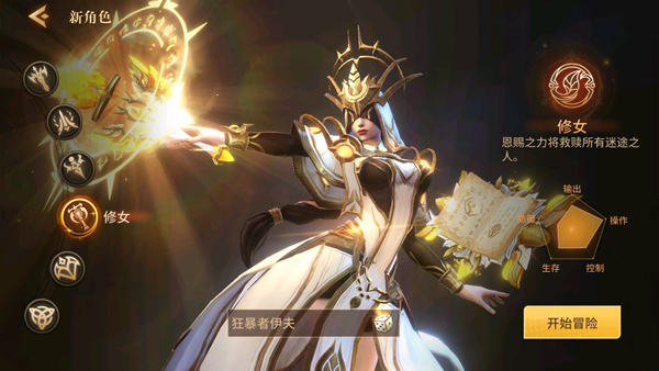 5、小编这里以“战士”为例,选择后编辑昵称,点“开始冒险”;