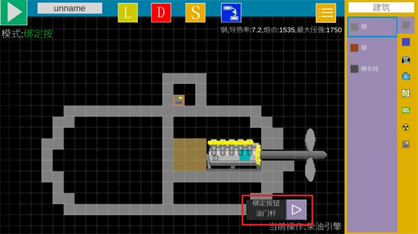 然后再点击柴油引擎,可以给柴油引擎绑定操作按钮。