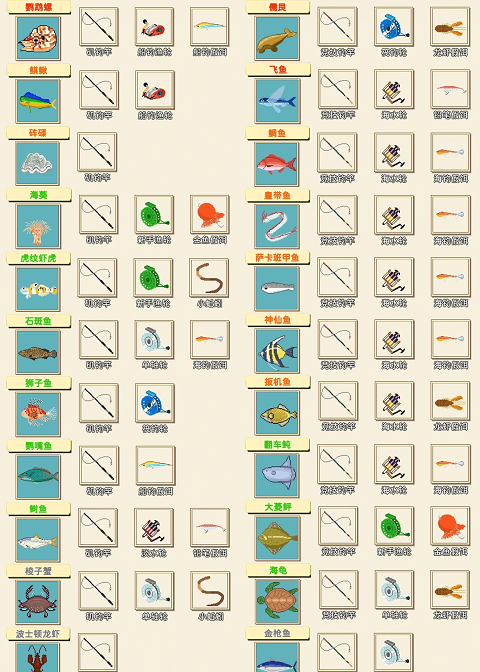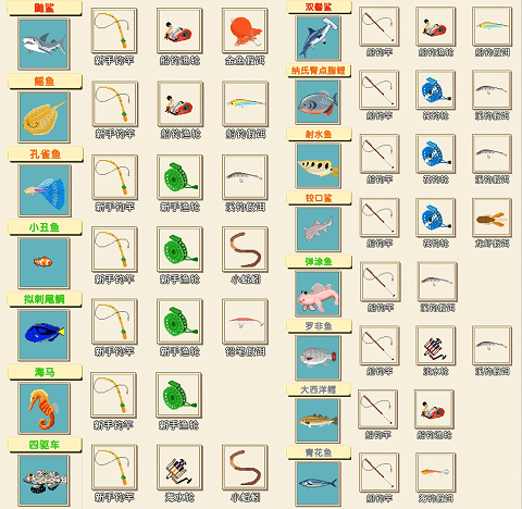 3、钓鱼全图鉴(共72种)