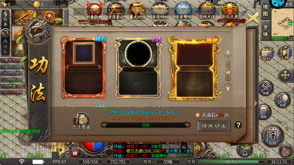 3、再就是增加打怪速和杀怪爆率的功法。