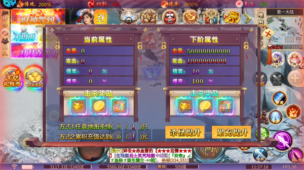 任意地图杀怪可获得属性加成和元宝等奖励。