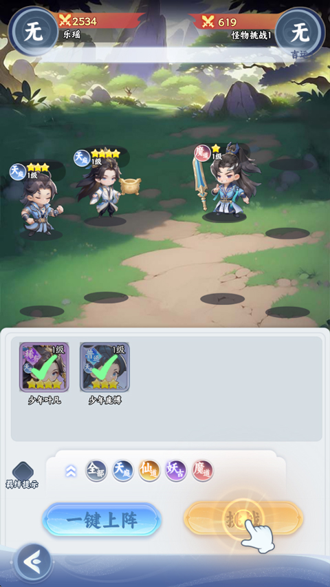 4、接着选择要上阵的角色,点击挑战;
