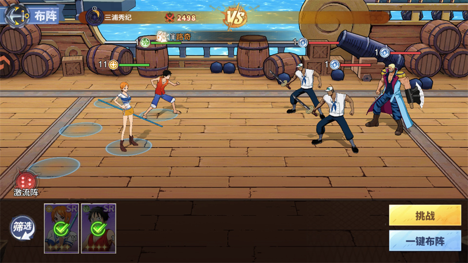 爆发输出:尼卡路飞(群体攻击,压低敌方血线)。