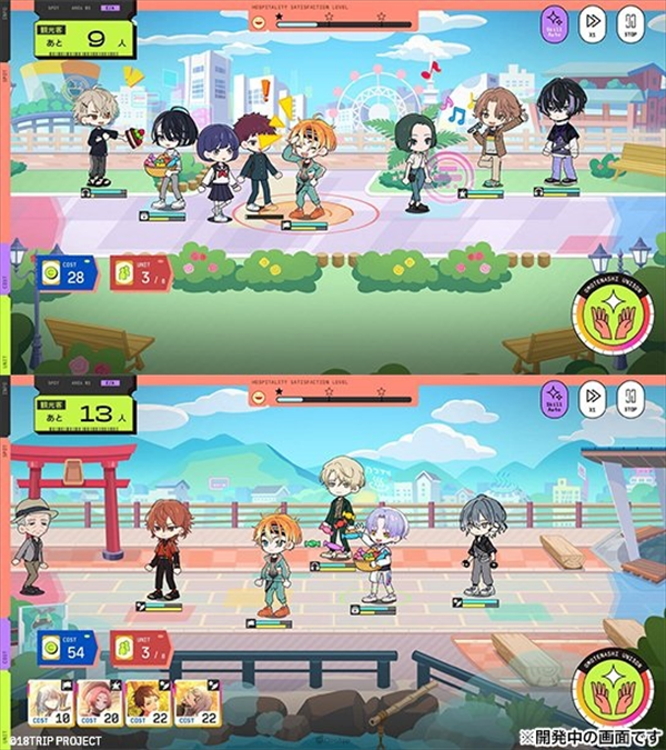 于「塔防风小游戏」招待观光客的「招待战」中,将登场与实际存在的观光地相对应的地图,以及可爱的三头身迷你角色。完全通关后,便能使用AUTO模式轻松进行召回。