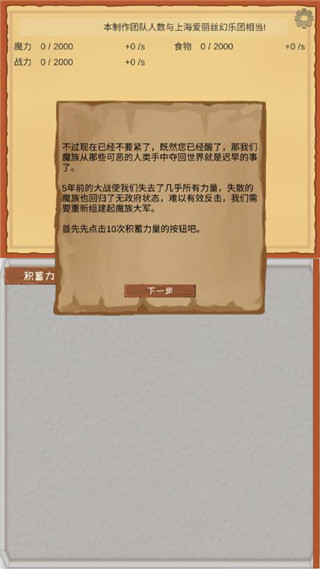 1、进入魔王归来游戏内,点击下一步开始游玩。