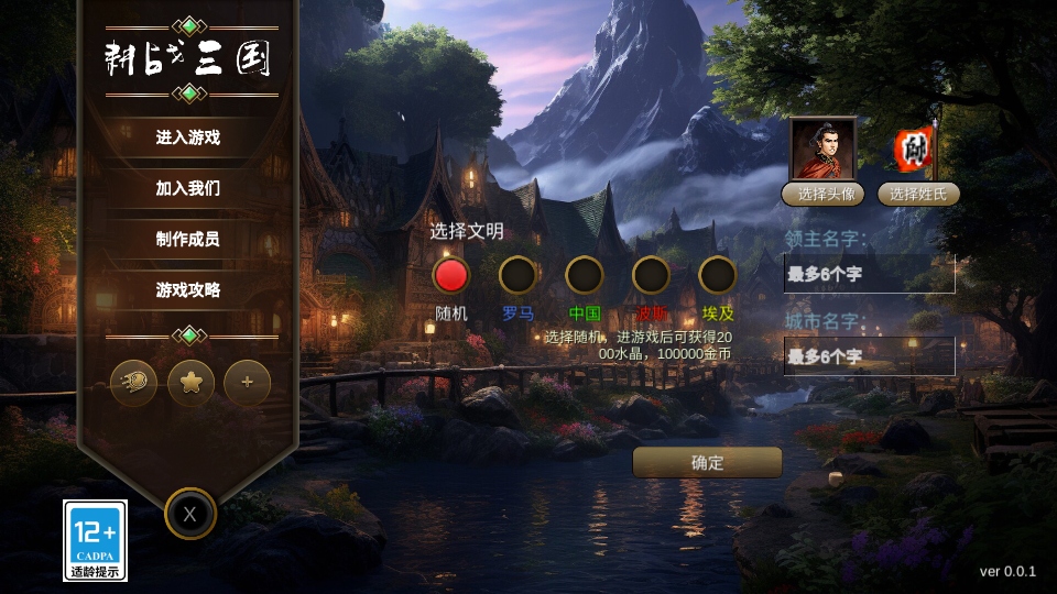 1.进入游戏后选择文明,取一个名字,选择头像,姓氏。