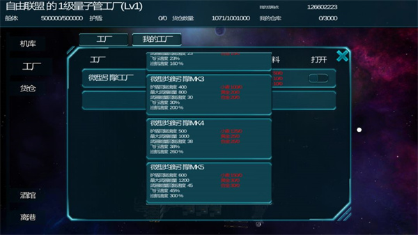 11、空间站有大小之分,大型船仅可停靠在大型空间站,大型工厂与巨型工厂仅可在大型空间站建造(例如造船厂与首都);工厂有等级之分,生产的商品种类也存在区别。此外记得及时补充原材料,否则厂子是不会工作的哦;