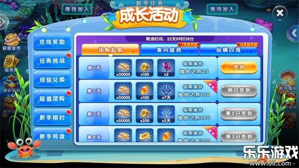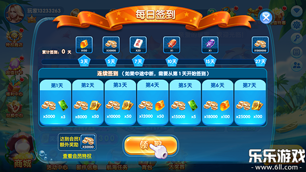 1、进入极限捕鱼破解版游戏内我们可以先来领取每日签到奖励。