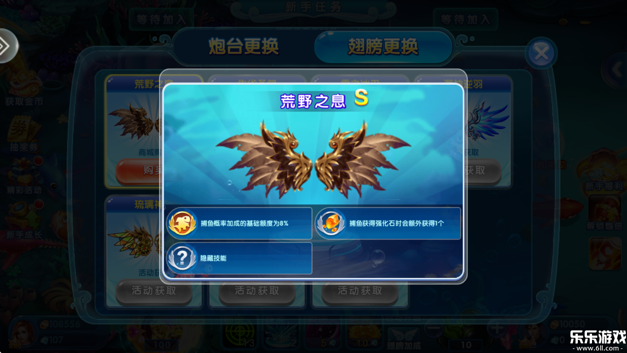 捕鱼概率加成的基础额度为10%