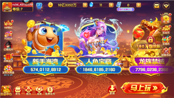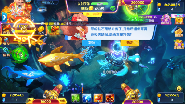 1、游戏共有7个房间可以选择,除去新手海湾可以直接玩,余下6个房间都需要升级到对应的炮倍才能解锁游玩。