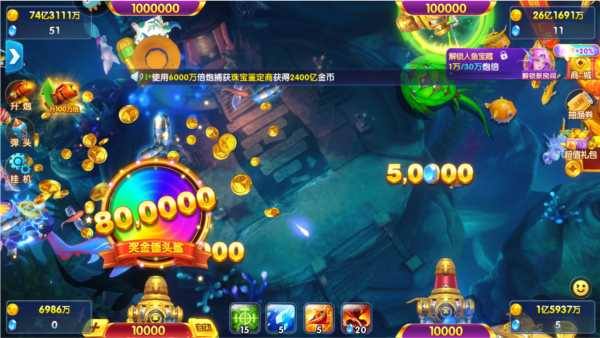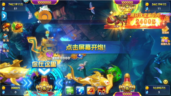 捕鱼大世界微信版是一款以经典街机捕鱼为核心玩法的手游,通过微信账号快捷登录,支持实时社交互动与组队竞技。游戏采用3D高精度建模与动态光影技术,打造沉浸式海底场景,提供真3D全景画面与炫酷特效。玩家可自由搭配炮台皮肤与角色外观,体验“策略+爆金”的双重爽感,零氪玩家也能通过技术解锁万倍炮台,玩家需要根据目标鱼类价值选择炮台倍率(如低倍率捕小鱼、高倍率攻BOSS),倍率越高消耗金币越多,但命中后收益更高,上百关卡冒险,解锁专属武器(如唐三藏的三藏真经),享受宇宙级射击体验,完成节日任务领取紫券、角色碎片等奖励,参与“红包雨”活动掉落话费券。