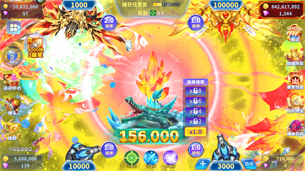 2、游戏里鱼种超多,BOSS也多,倍率高,长时间点击屏幕就能把鱼给捕,操作十分简单。