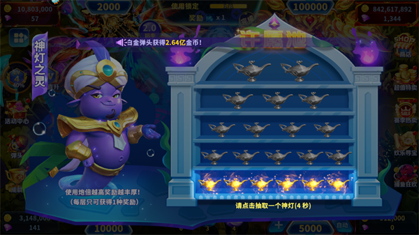 5、游玩过程中有时直接爆阿拉丁神灯,带来巨大奖励,获取超爽爆屏奖励。
