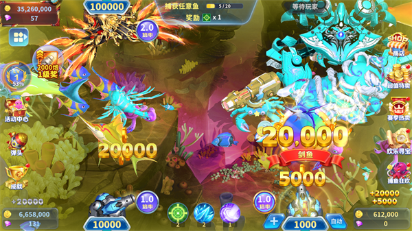 1. 完美还原经典街机捕鱼玩法,让你重温熟悉的捕鱼乐趣。