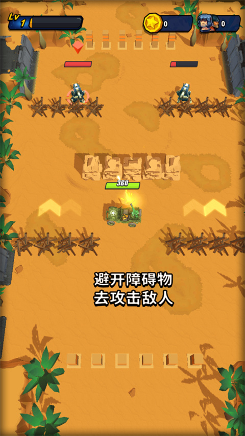 2、穿越复杂地形,躲避敌方炮火并攻击敌人