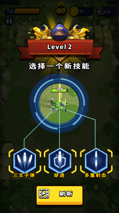 3. 有多种炮台和车身可供选择,炮台决定攻击方式,车身提升生存能力,玩家可依自身喜好搭配,打造独特坦克。