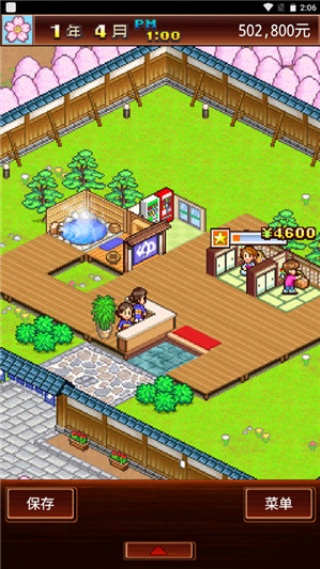 暖暖温泉乡(net.kairosoft.android.onsen_ja)是一款采用日式像素风题材的模拟经营类手游。你将接手一座坐落于深山之中的古老温泉旅馆,从一间小小的家庭汤屋开始,逐步扩建浴池、装修客房、开发美食、服务宾客,将它打造成闻名遐迩的顶级温泉乡。温暖的像素画风、治愈的经营节奏、来来往往的客人故事——在这里,你经营的不仅是一家旅馆,更是一份让身心得到治愈的温暖!