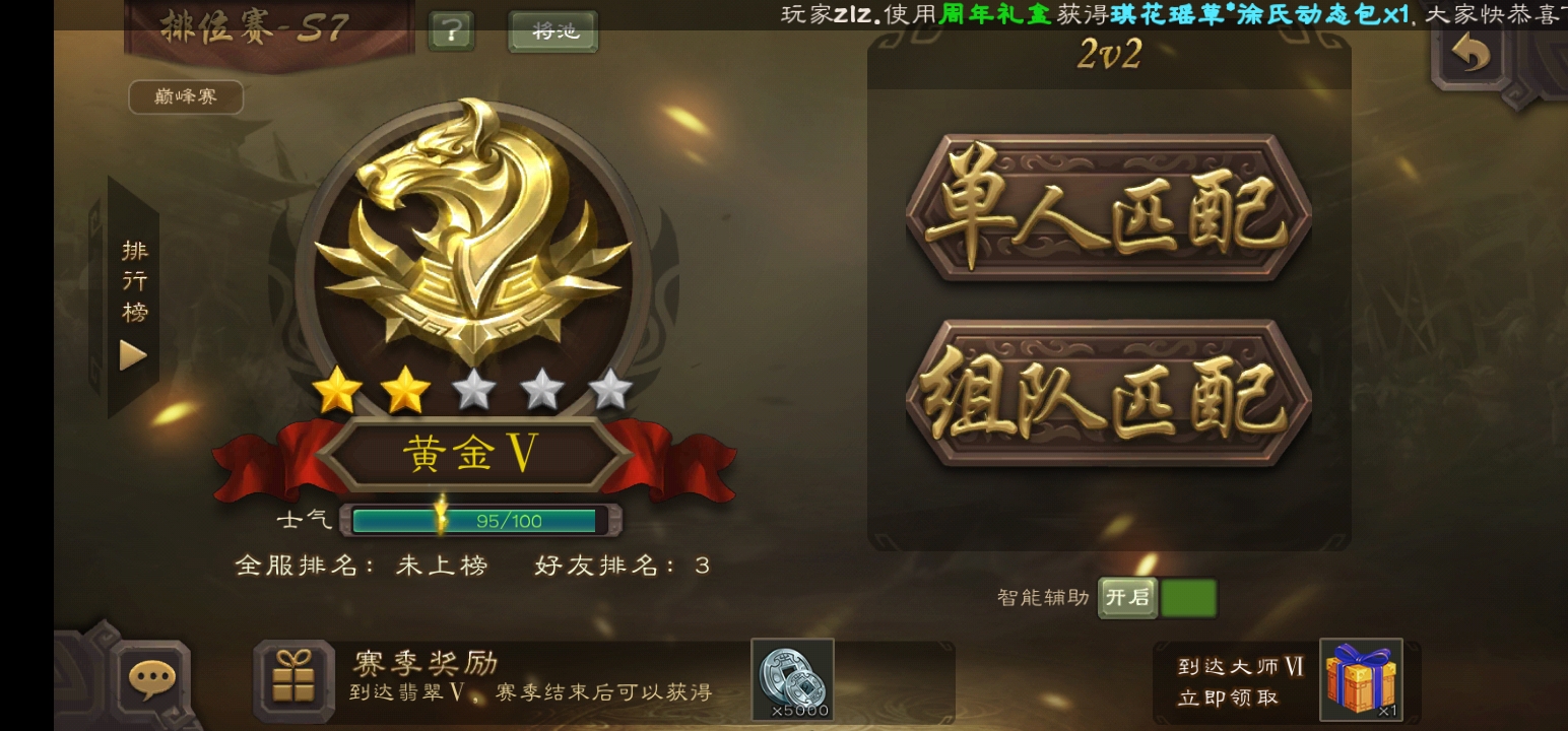 排位赛位于三国杀首页正中间,排位赛在所有游戏当中都是具有一定重要性和庄严性的。三国杀也不例外。
