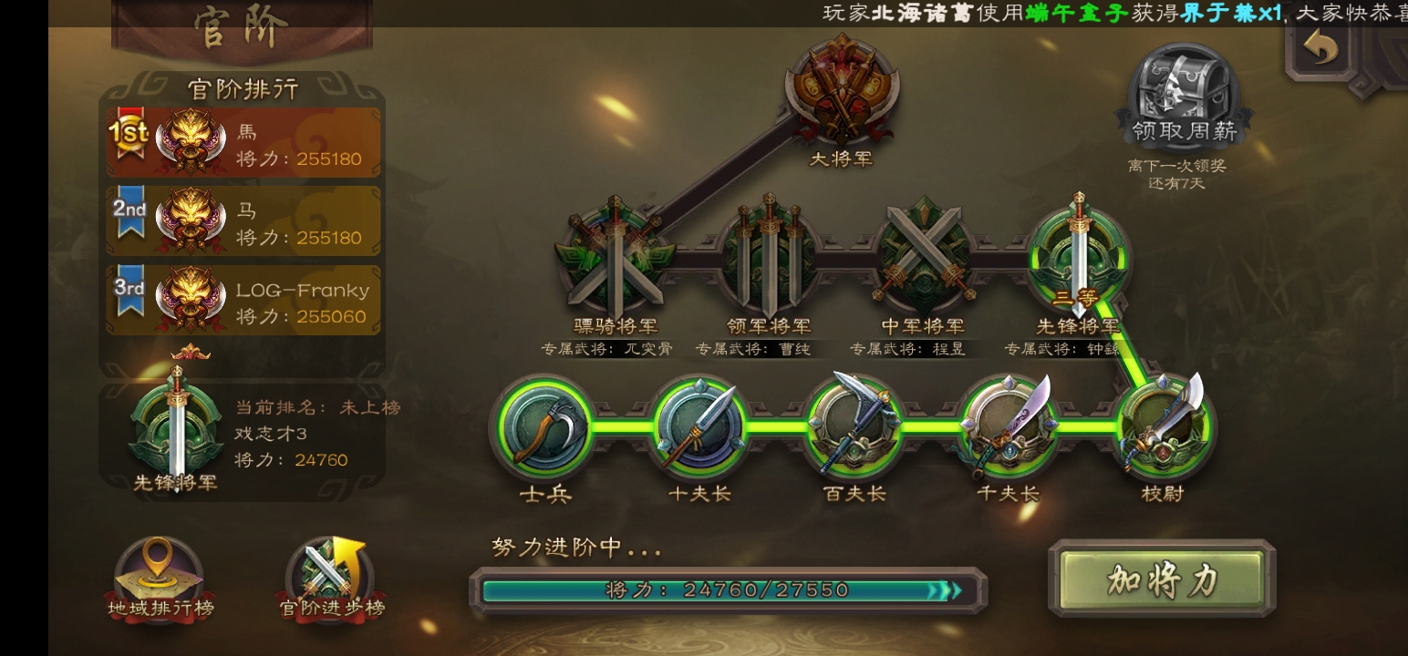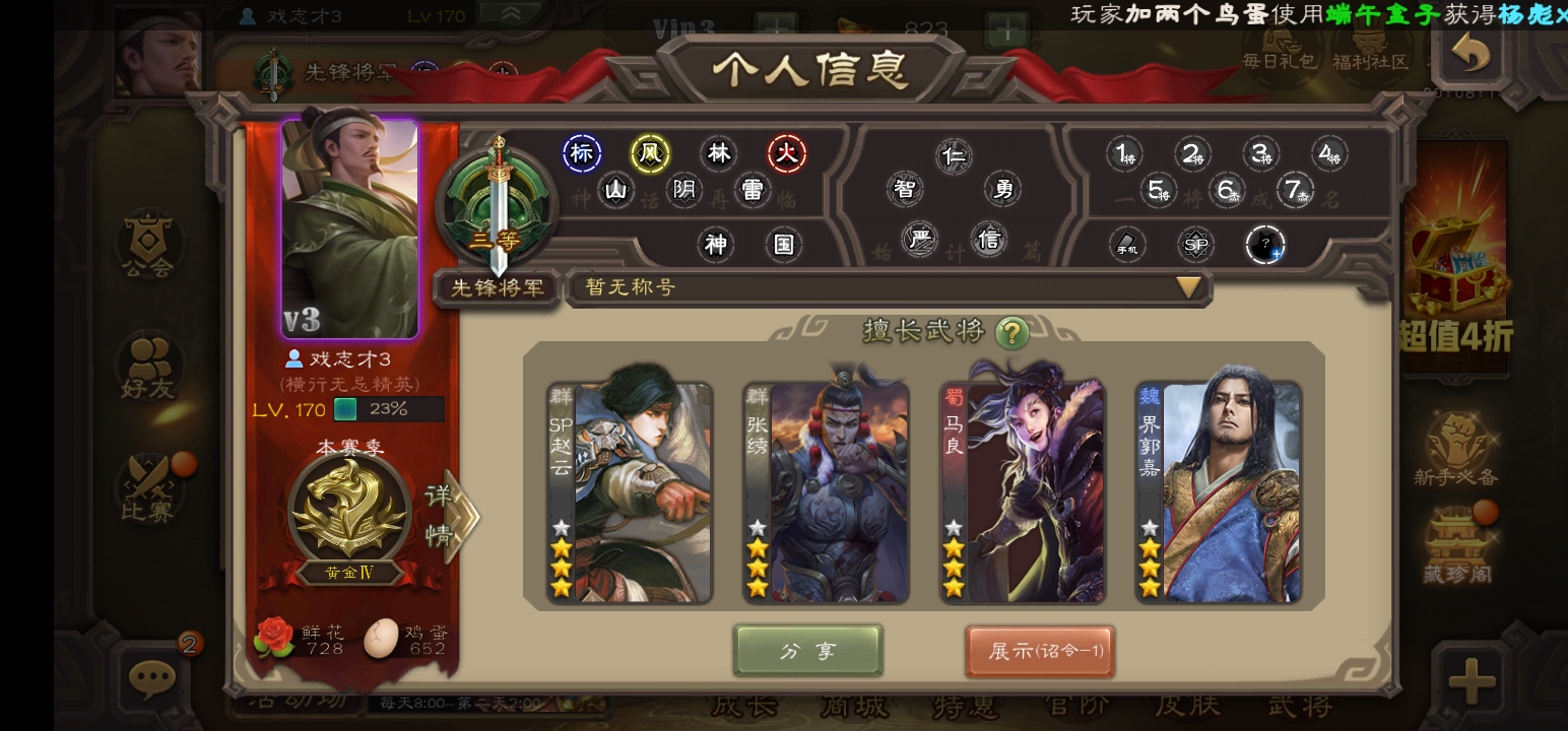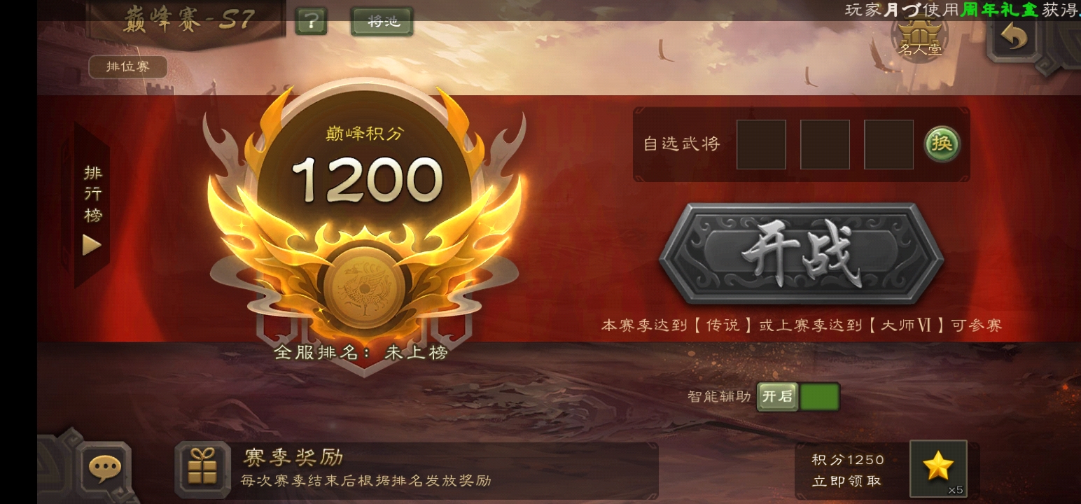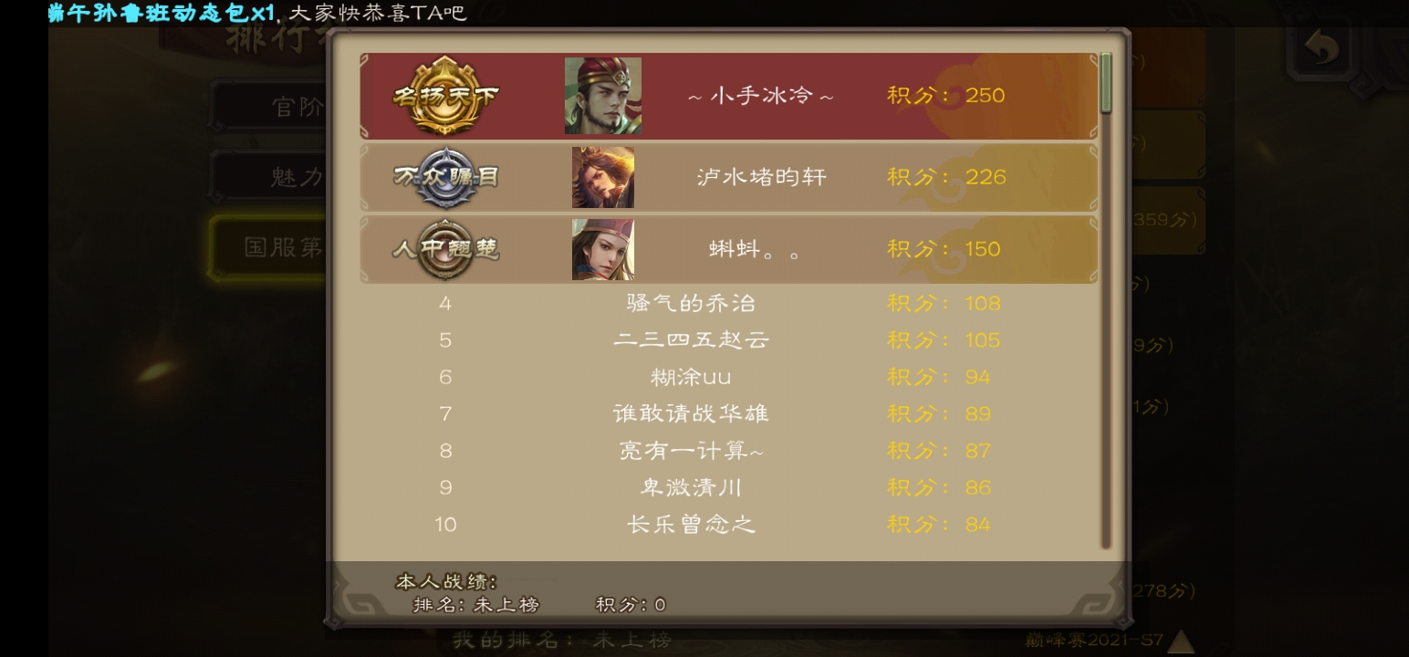 排行榜:顾名思义,但是我认为能够查看的榜单中最有用的只有巅峰赛武将分数赛季榜。