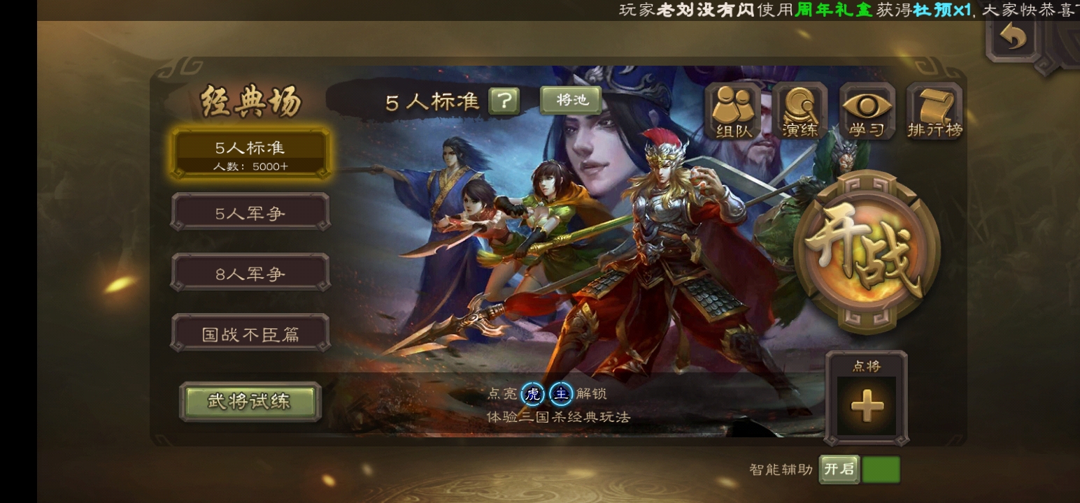经典场位于游戏首页的左部,属于三国杀移动版中大热门模式,也就是平常两三个朋友在桌子上的玩法。