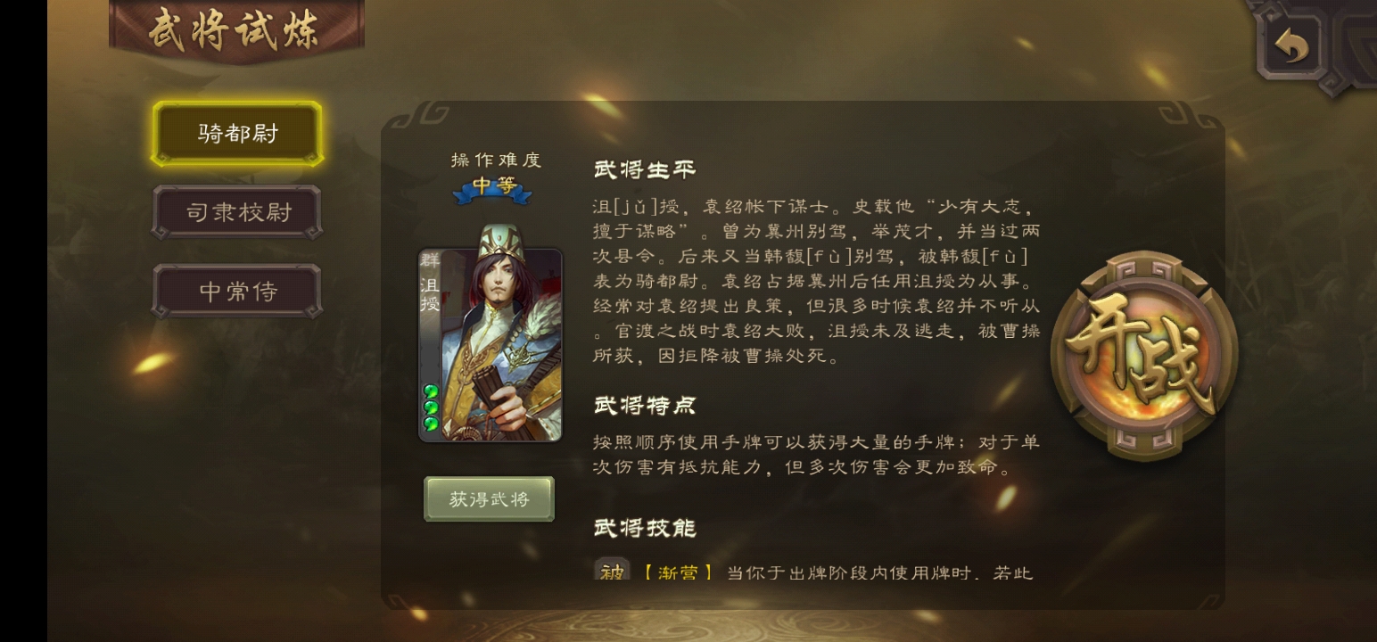 这样一来,萌新可以通过武将试炼进行实战去了解熟悉一些武将的技能和玩法,对于自己来说是很大的进步。