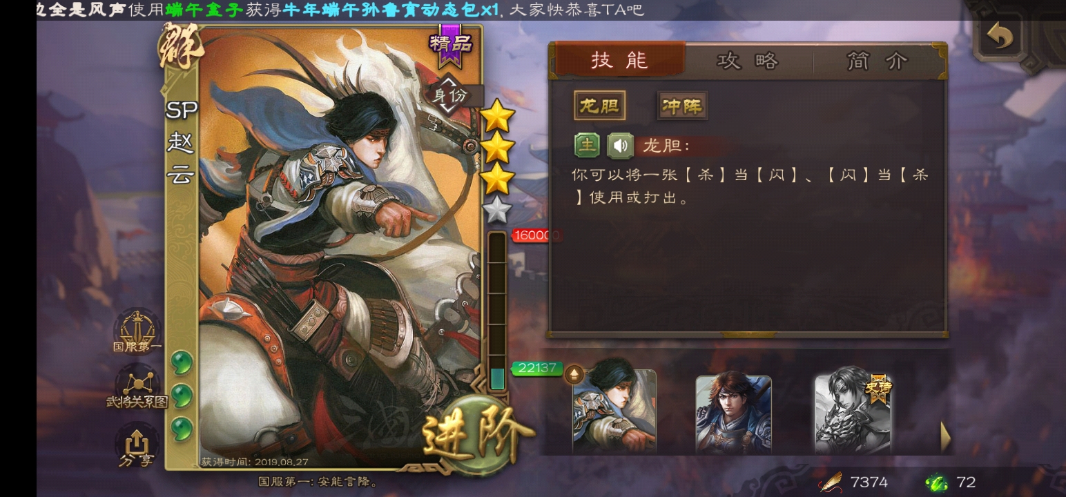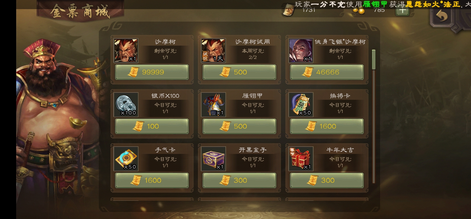 再来就是武将试炼每天随机更新关卡的指定武将,这些指定武将可能是标将,但是也可能是留赞张让这种萌新很难接触到的武将,