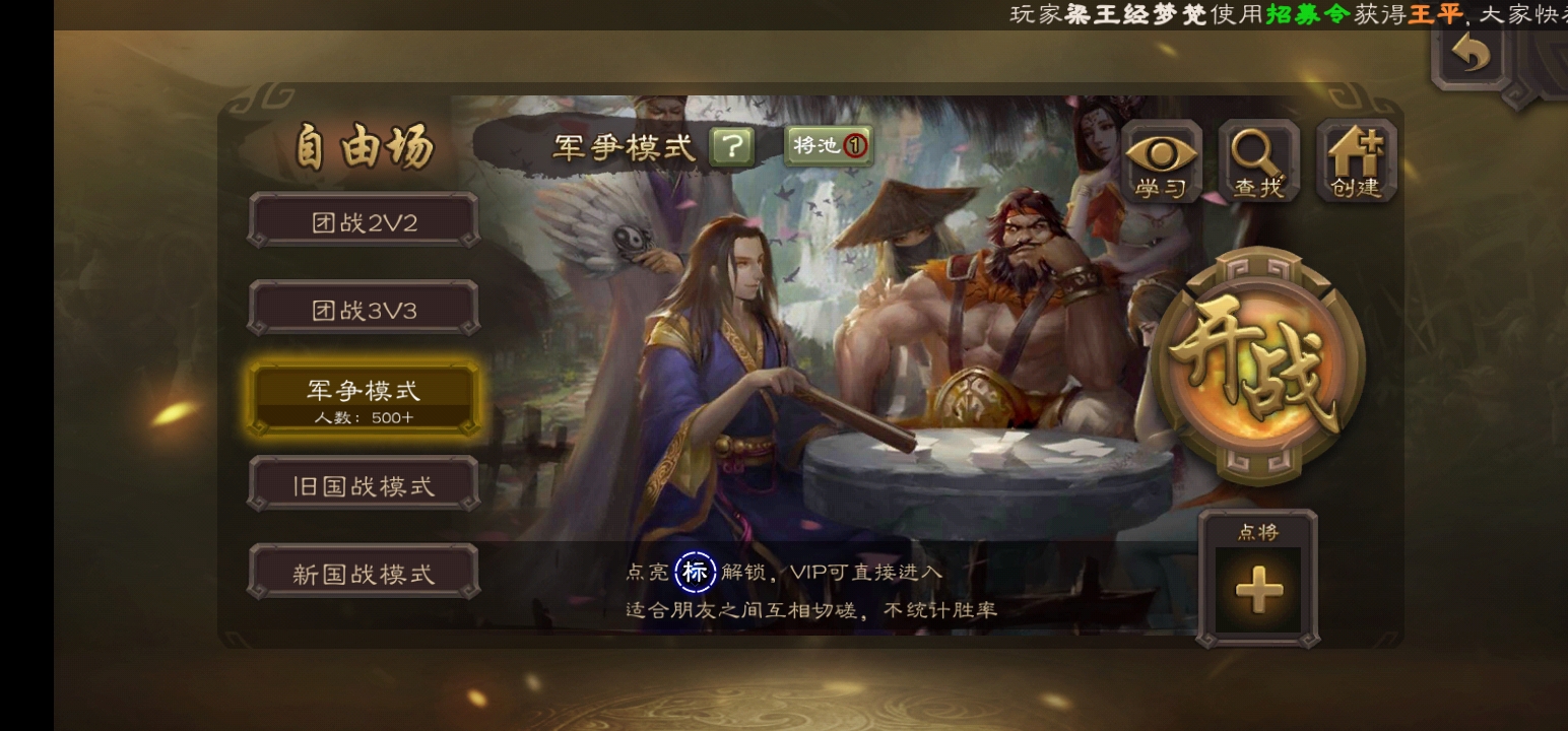 军争方面新手教程会教,如果认真看完并且现实生活或多或少和朋友玩两局三国杀那就不可能不会玩。所以我只简单介绍这个模式的一些事项。