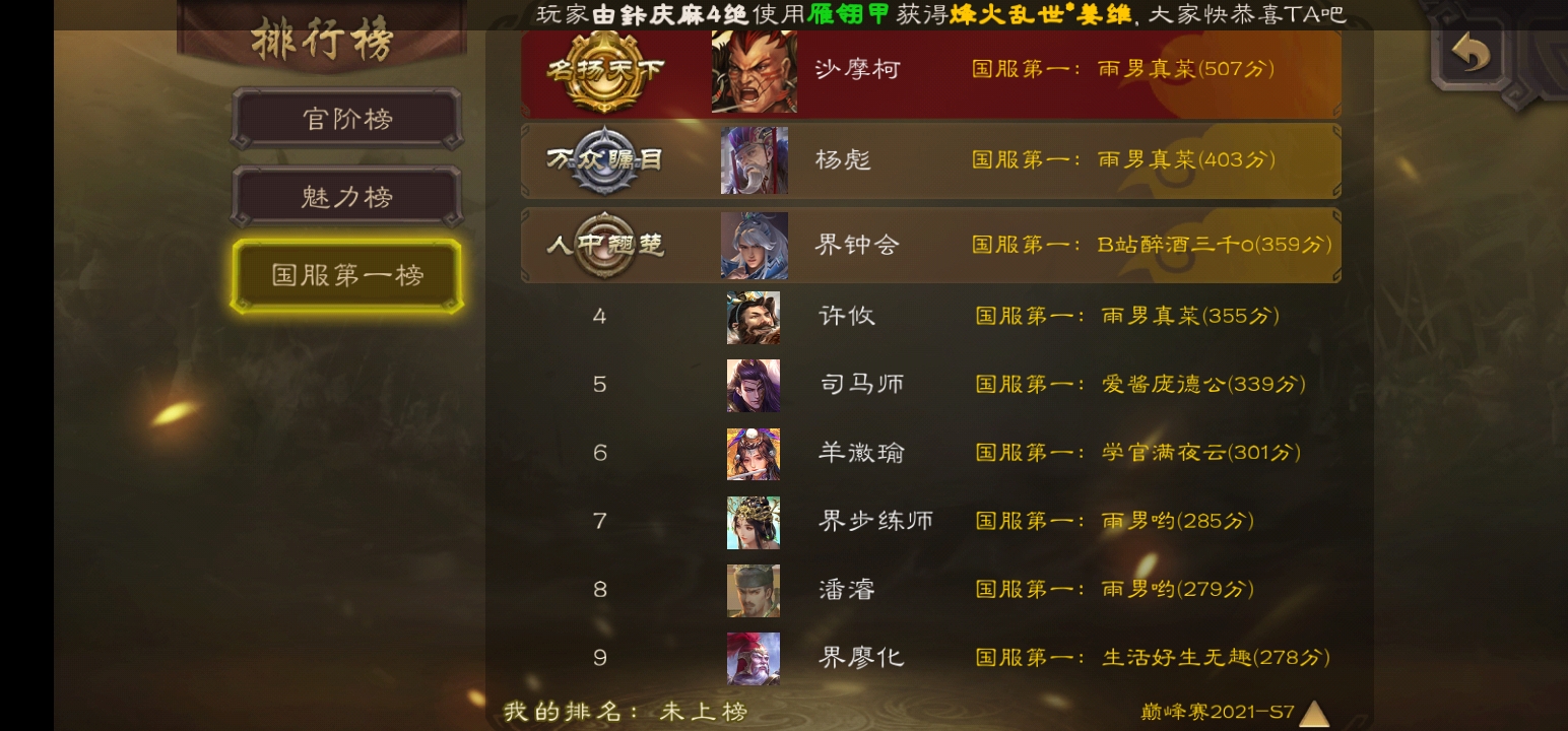 比如少年说过的国服第一榜单,可以用来侧面查看武将强度。