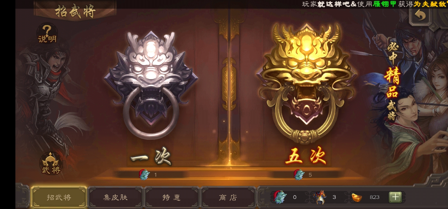 商城用来购买游戏道具和抽武将抽皮肤等。