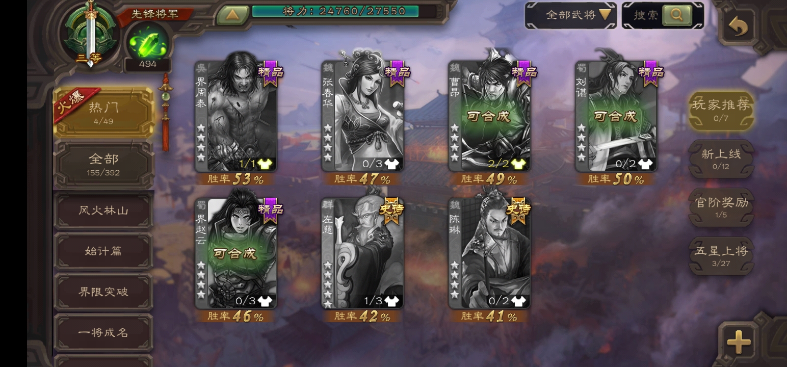 在这里可以查看你拥有那些武将,未拥有那些武将,当然对于萌新来说最大的作用就是了解武将以及武将的技能等等。