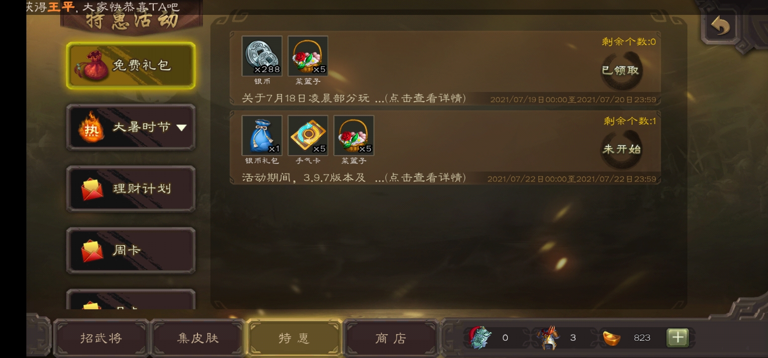 不管是限时盒子还是每日特定武将或者每日免费福利等。都是和活动挂钩的。