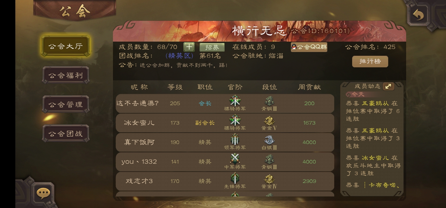 公会团战是以2V2的玩法来的,不过公会团战没有排位赛那样的匹配机制,千夫长匹配到大将军都是有可能的。