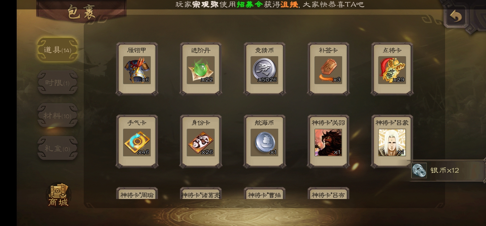 如果要氪金最好别在商城原价购买这些道具或者招募令等等,等活动或者买礼包买盒子什么的比原价购买赚很多的。