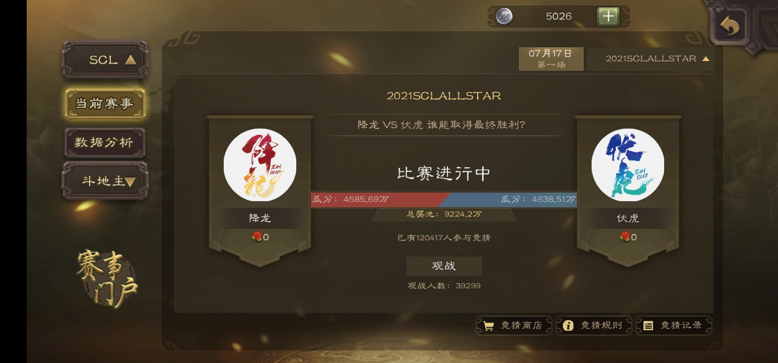 在排位赛中,两名玩家组成的“龙”阵营会于另外两名玩家组成的“虎”阵营进行游戏。