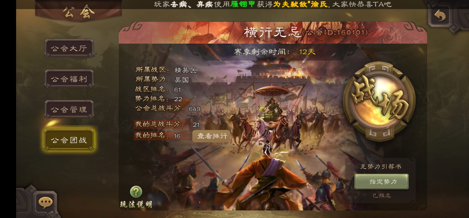 公会团战其实很简单,到时间点进入战场然后找个公会成员一起就行了。