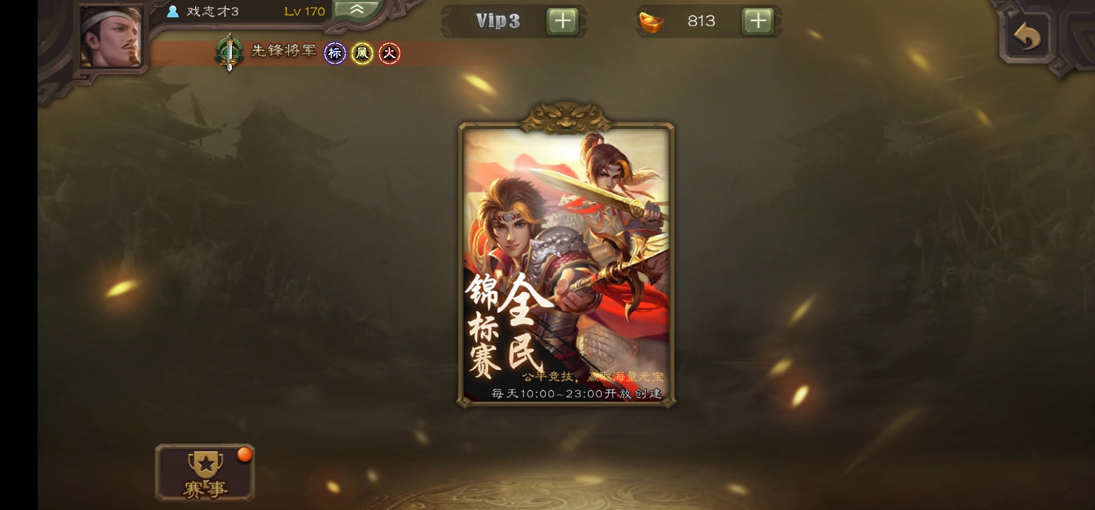 全民锦标赛又玩家自行组织,对发起锦标赛的人有一定限制。除此之外任何玩家都可以报名参加。虽然奖励可能不是很丰厚,但是这个赛事好就好在可以免费体验一些武将。