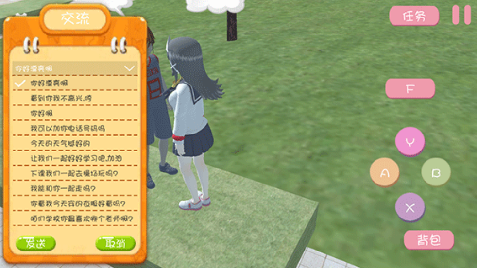 1、扮演一个可爱的女高中生,换装系统完善,穿戴上自己喜欢的衣服,个性化十足。