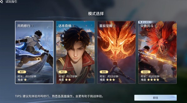 推荐流程:优先通关「共鸣修行」打好操作基础,再按“话本奇缘 → 星辰觉醒 → 灾兽共斗”的顺序依次体验。