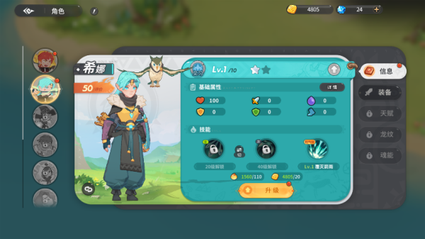 3、获得经验后点击左下角的角色可以对角色升级或者提升技能等级。